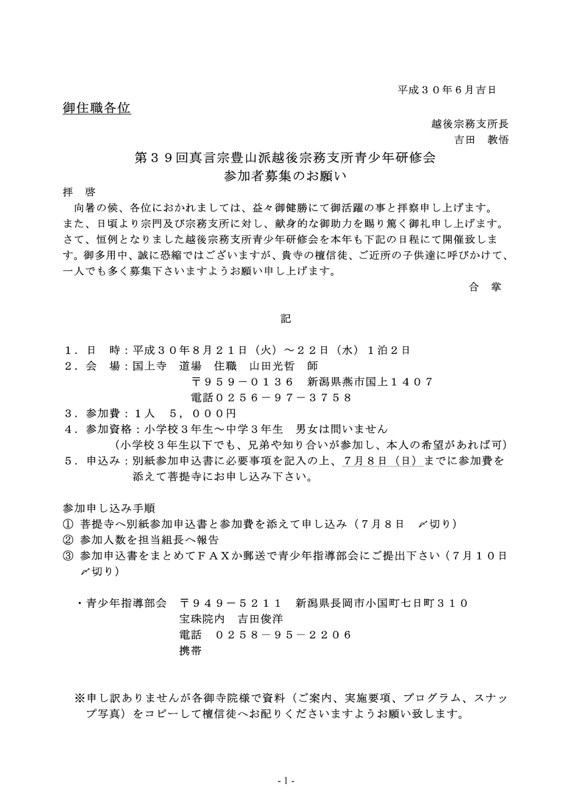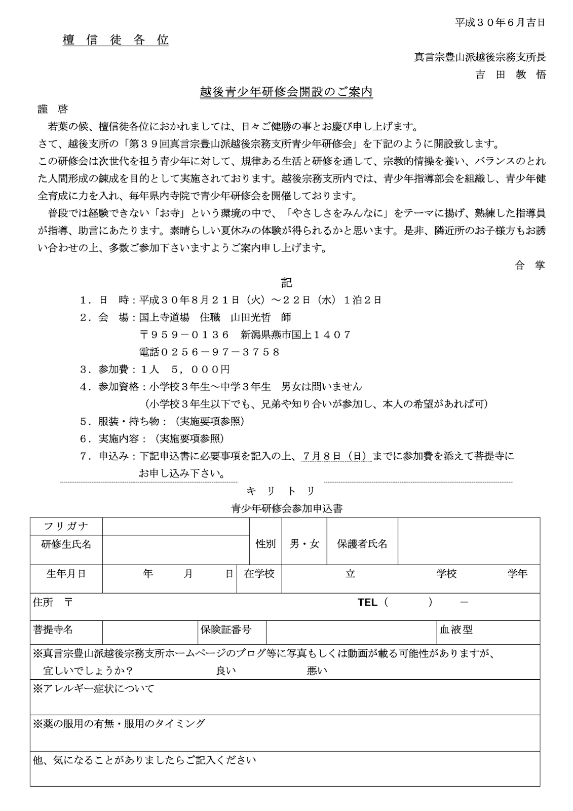 2018年6月13日 / 最終更新日時 : 2018年6月13日 echigo お知らせ行事 第39回真言宗豊山派越後宗務支所青少年研修会参加者募集のお願い FacebookXBlueskyHatenaPocketCopy コメントを残す コメントをキャンセルメールアドレスが公開されることはありません。 ※ が付いている欄は必須項目ですコメント ※ 名前 ※ メール ※ サイト 次回のコメントで使用するためブラウザーに自分の名前、メールアドレス、サイトを保存する。 上に表示された文字を入力してください。 Δ