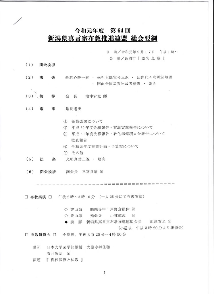 令和元年 64回新潟県布教推進連盟総会並びに布教研修会