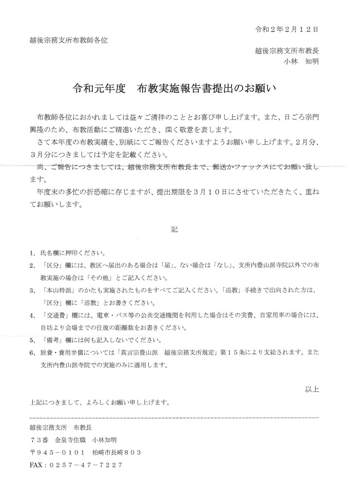 2020年2月13日 / 最終更新日時 : 2020年3月27日 echigo お知らせ行事 令和元年度 布教実施報告書提出のお願い FacebookXBlueskyHatenaCopy コメントを残す コメントをキャンセルメールアドレスが公開されることはありません。 ※ が付いている欄は必須項目ですコメント ※ 名前 ※ メール ※ サイト 次回のコメントで使用するためブラウザーに自分の名前、メールアドレス、サイトを保存する。 上に表示された文字を入力してください。 Δ
