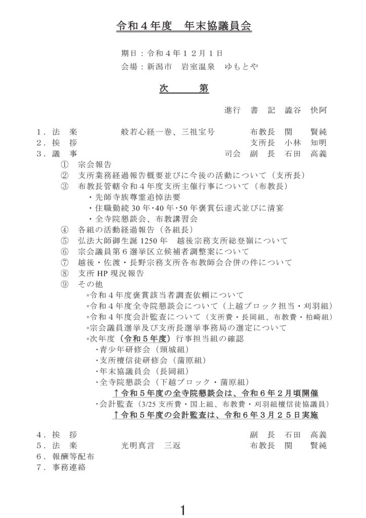2022年12月2日 / 最終更新日時 : 2022年12月2日 echigo 活動紹介/行事報告 令和年四度 年末協議員会 昨日、新潟市「ゆもとや」様を会場に令和四年度年末協議員会が開かれました。各報告を基に今後の課題や来年度への引継ぎについて話し合われました。 FacebookXBlueskyHatenaCopy