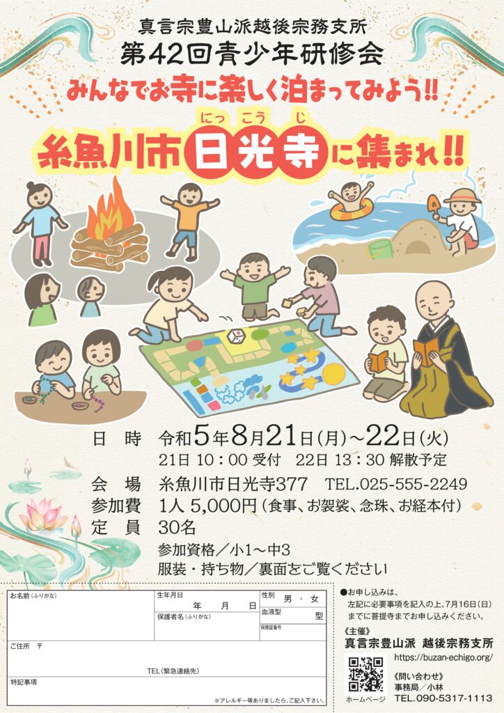 令和5年8月21日(月)~22日(火)に『第42回 越後青少年研修会』が開催される事となりました。