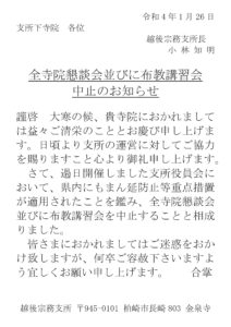 全寺院懇談会並びに布教講習会中止のお知らせ