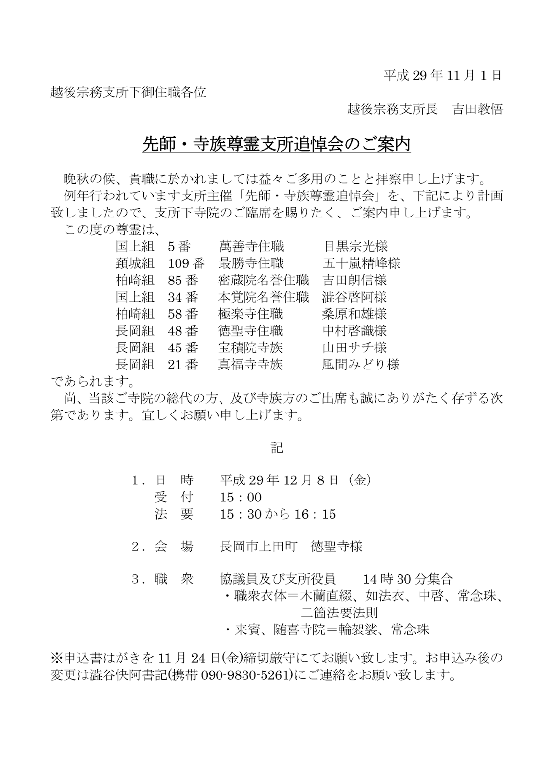 2017年11月1日 / 最終更新日時 : 2017年11月1日 echigo お知らせ行事 先師・寺族尊霊支所追悼会のご案内 FacebookXBlueskyHatenaCopy コメントを残す コメントをキャンセルメールアドレスが公開されることはありません。 ※ が付いている欄は必須項目ですコメント ※ 名前 ※ メール ※ サイト 次回のコメントで使用するためブラウザーに自分の名前、メールアドレス、サイトを保存する。 上に表示された文字を入力してください。 Δ