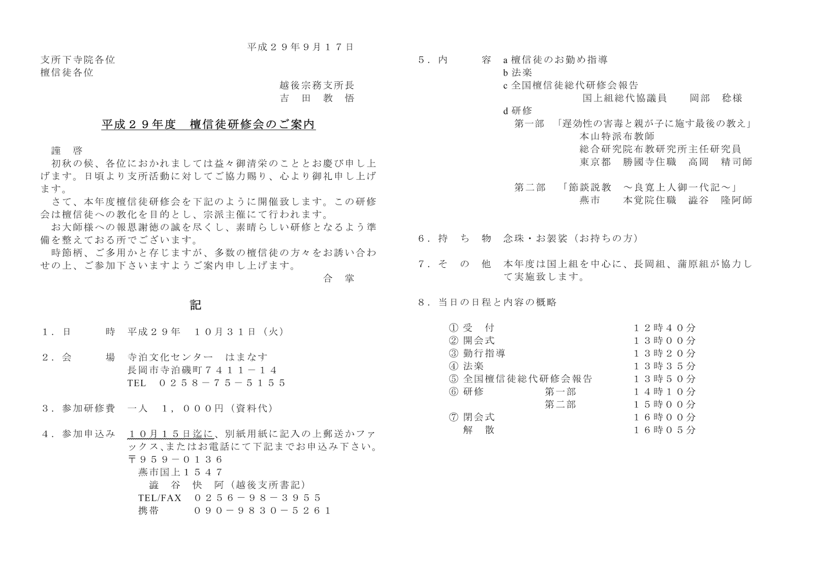 2017年9月17日 / 最終更新日時 : 2017年9月17日 echigo お知らせ行事 平成29年度 檀信徒研修会のご案内 FacebookXBlueskyHatenaCopy コメントを残す コメントをキャンセルメールアドレスが公開されることはありません。 ※ が付いている欄は必須項目ですコメント ※ 名前 ※ メール ※ サイト 次回のコメントで使用するためブラウザーに自分の名前、メールアドレス、サイトを保存する。 上に表示された文字を入力してください。 Δ