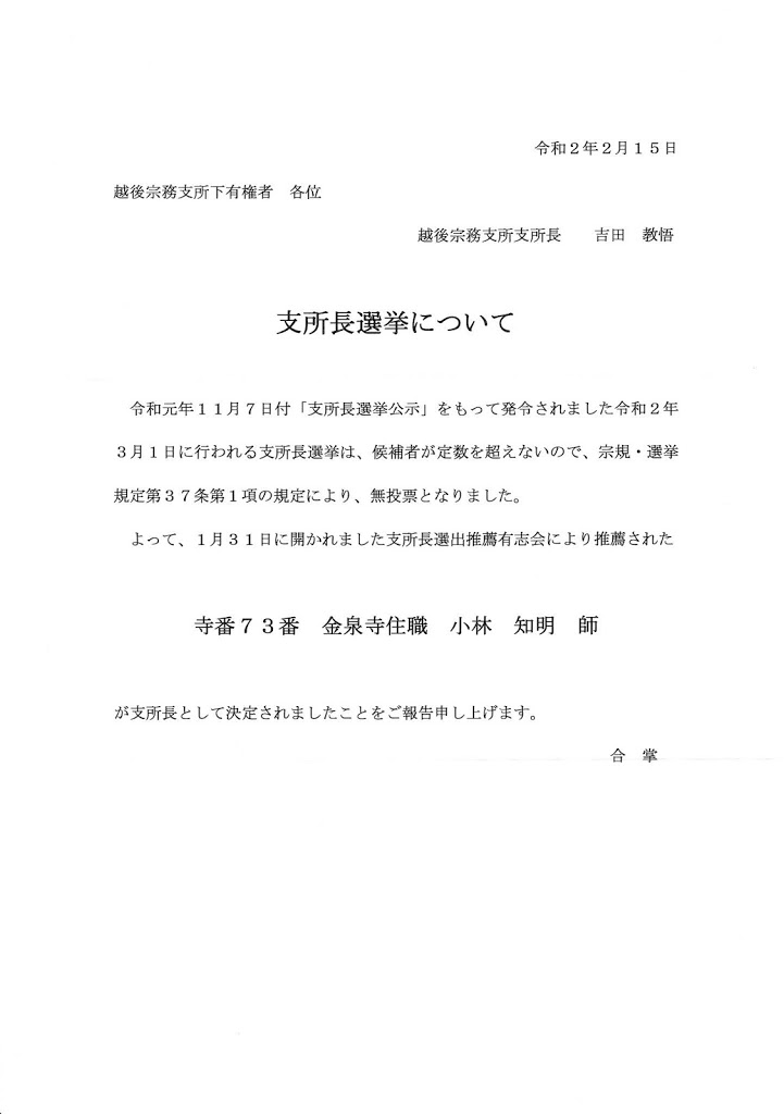 2020年2月18日 / 最終更新日時 : 2020年3月27日 echigo お知らせ行事 支所長選挙について FacebookXBlueskyHatenaCopy コメントを残す コメントをキャンセルメールアドレスが公開されることはありません。 ※ が付いている欄は必須項目ですコメント ※ 名前 ※ メール ※ サイト 次回のコメントで使用するためブラウザーに自分の名前、メールアドレス、サイトを保存する。 上に表示された文字を入力してください。 Δ