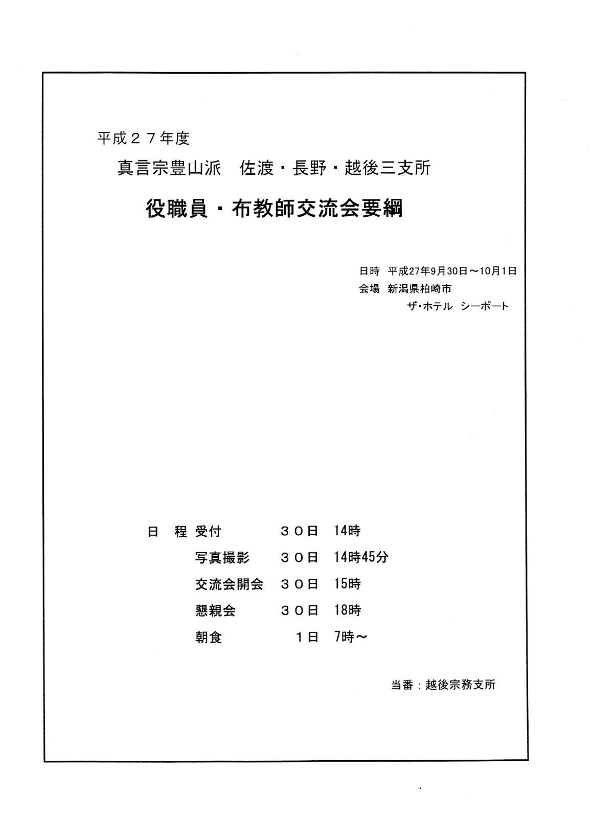 2015年10月1日 / 最終更新日時 : 2015年10月1日 echigo お知らせ行事 真言宗豊山派佐渡・長野・越後三支所 役職員・布教師交流会 FacebookXBlueskyHatenaCopy コメントを残す コメントをキャンセルメールアドレスが公開されることはありません。 ※ が付いている欄は必須項目ですコメント ※ 名前 ※ メール ※ サイト 次回のコメントで使用するためブラウザーに自分の名前、メールアドレス、サイトを保存する。 上に表示された文字を入力してください。 Δ