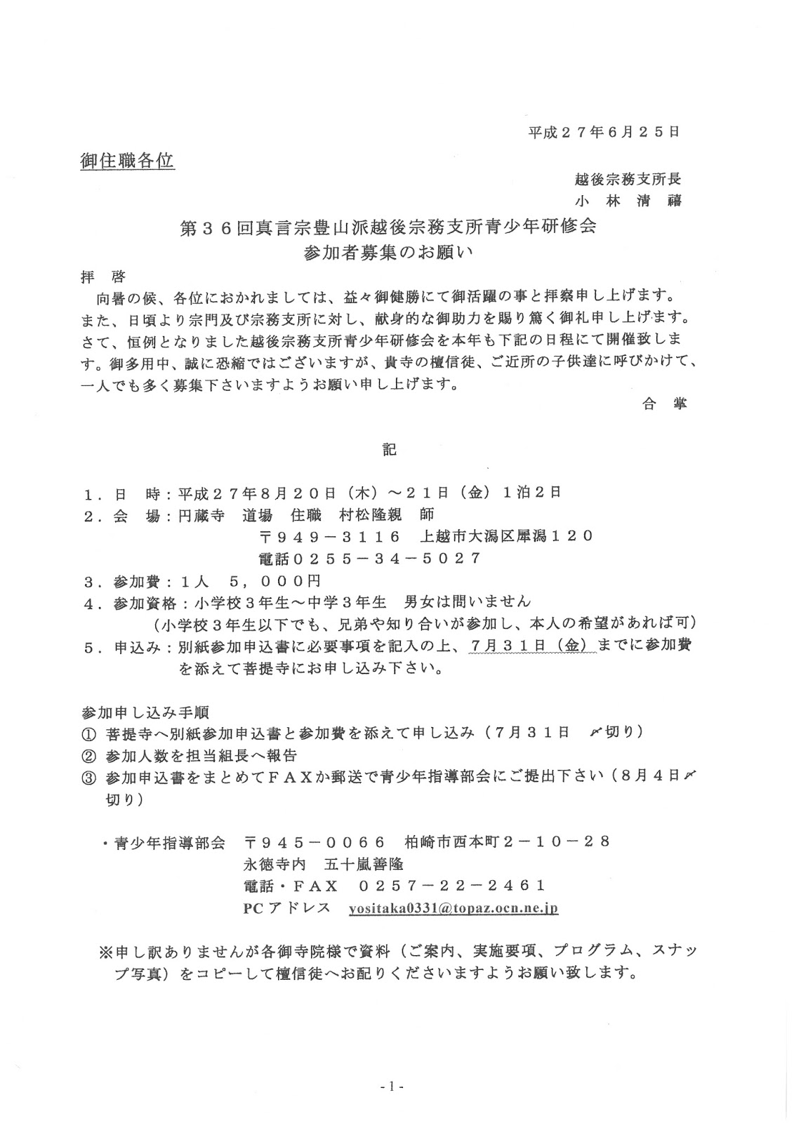 2015年7月3日 / 最終更新日時 : 2015年7月3日 echigo お知らせ行事 第36回越後支所青少年研修会 参加者募集 要項 他 FacebookXBlueskyHatenaCopy コメントを残す コメントをキャンセルメールアドレスが公開されることはありません。 ※ が付いている欄は必須項目ですコメント ※ 名前 ※ メール ※ サイト 次回のコメントで使用するためブラウザーに自分の名前、メールアドレス、サイトを保存する。 上に表示された文字を入力してください。 Δ