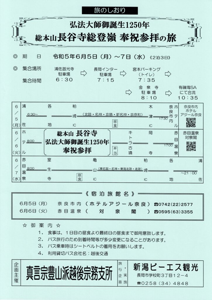 越後宗務支所主催『総本山 長谷寺総登嶺 奉祝参拝の旅』