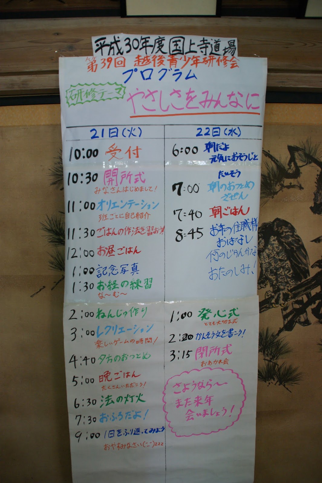 2018年8月20日 / 最終更新日時 : 2020年3月27日 echigo 活動紹介/行事報告 青少年研修準備 本日、第39回・真言宗豊山派越後宗務支所「青少年研修会」の打ち合わせ、準備が行われました。 今年の会場寺院は、燕市の国上寺様です。 お盆明けのお疲れのなか、大勢の方に参加していただきました。 FacebookXBlueskyHatenaCopy コメントを残す コメントをキャンセルメールアドレスが公開されることはありません。 ※ が付いている欄は必須項目ですコメント ※ 名前 ※ メール ※ サイト 次回のコメントで使用するためブラウザーに自分の名前、メールアドレス、サイトを保存する。 上に表示された文字を入力してください。 Δ